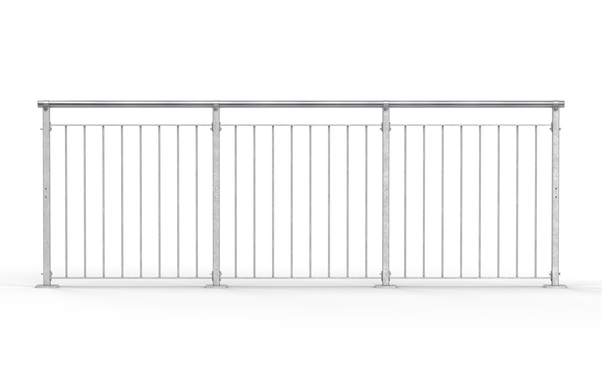 Vores sektionsgelændere er som standard varmforzinkede. På vores egne anlæg overfladebehandles gelænderet for at kunne klare store belastninger. Metoden giver en meget stærk beskyttelse mod korrosion. Vi råder også over moderne maleranlæg og kan levere gelændere til alle typer af miljøer i de fleste farver.