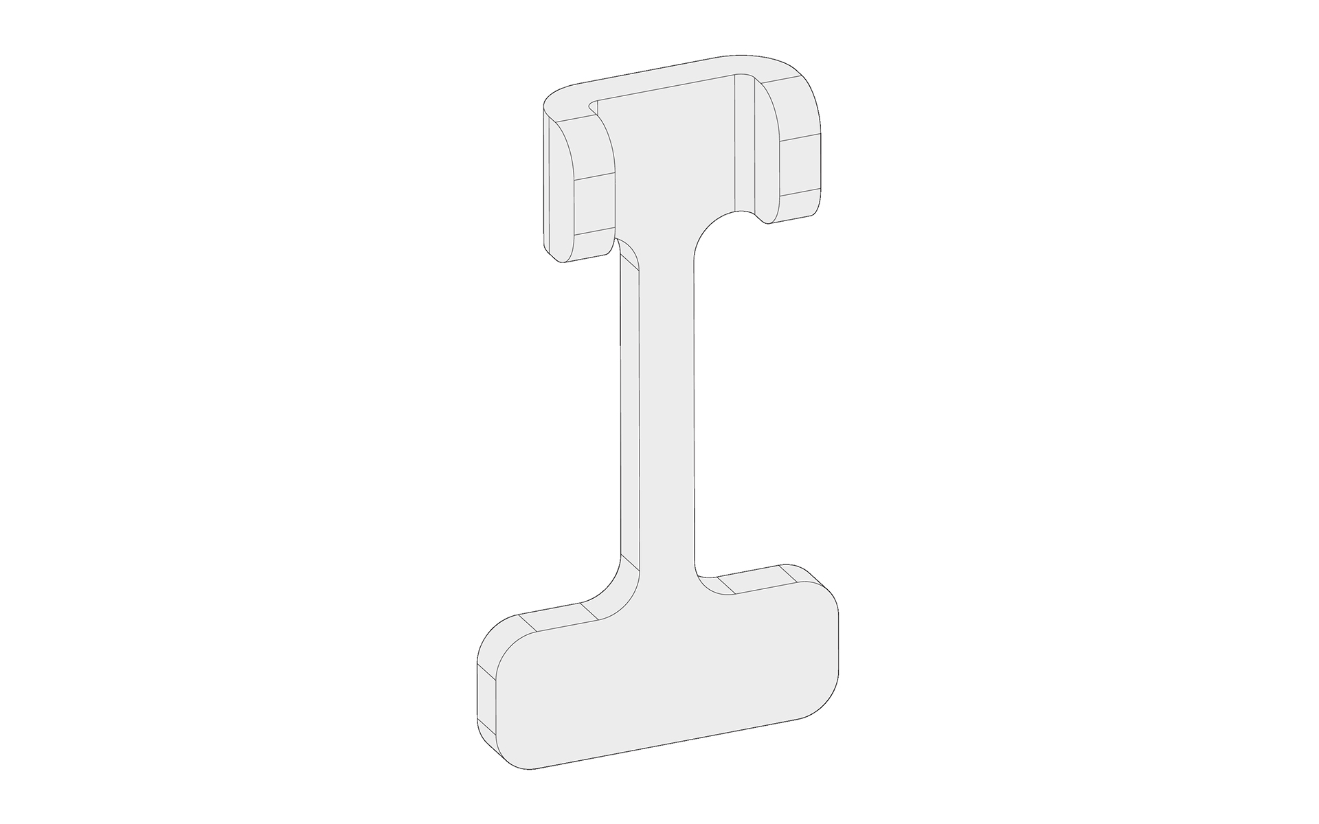 Komplet beslag i fire dele. Specialoverdel, underdel, skrue og møtrik. Fås i skruelængderne 50, 60, 70 og 80 mm. Monteres uden boring i underlaget.