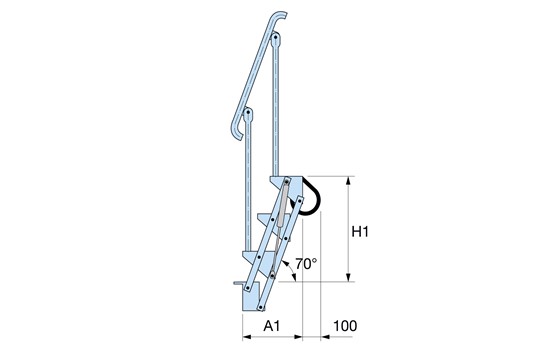 Vores nedfældelige trapper er et udmærket alternativ til en fast konstruktion, hvor man har forskellige niveauforskelle, for eksempel ned til luger på tankbiler. Den nedfældelige trappe bruges først og fremmest i petrokemiske industrier, men også i andre miljø, hvor en fast trappekonstruktion ikke er mulig. Den nedfældelige trappe, som er leddelt, består af en række gitterristtrin med parallelle vanger, gummibeklædte støttebøjler, gelænder i begge sider samt beslag. To dæmpere i siden gør trappen let at håndtere. Den nedfældelige trappe leveres samlet og lagerføres med 3, 4, 5 og 6 trin. Den nedfældelige trappe lagerføres til hurtig levering.