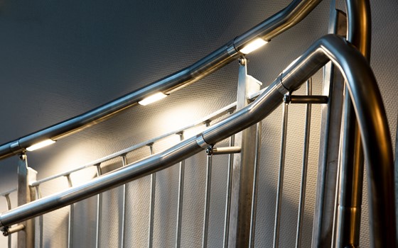 Belysningen i trappegelænderets håndliste øger sikkerheden og bliver en spændende del af trappens design. Konstruktionen er patenteret.
