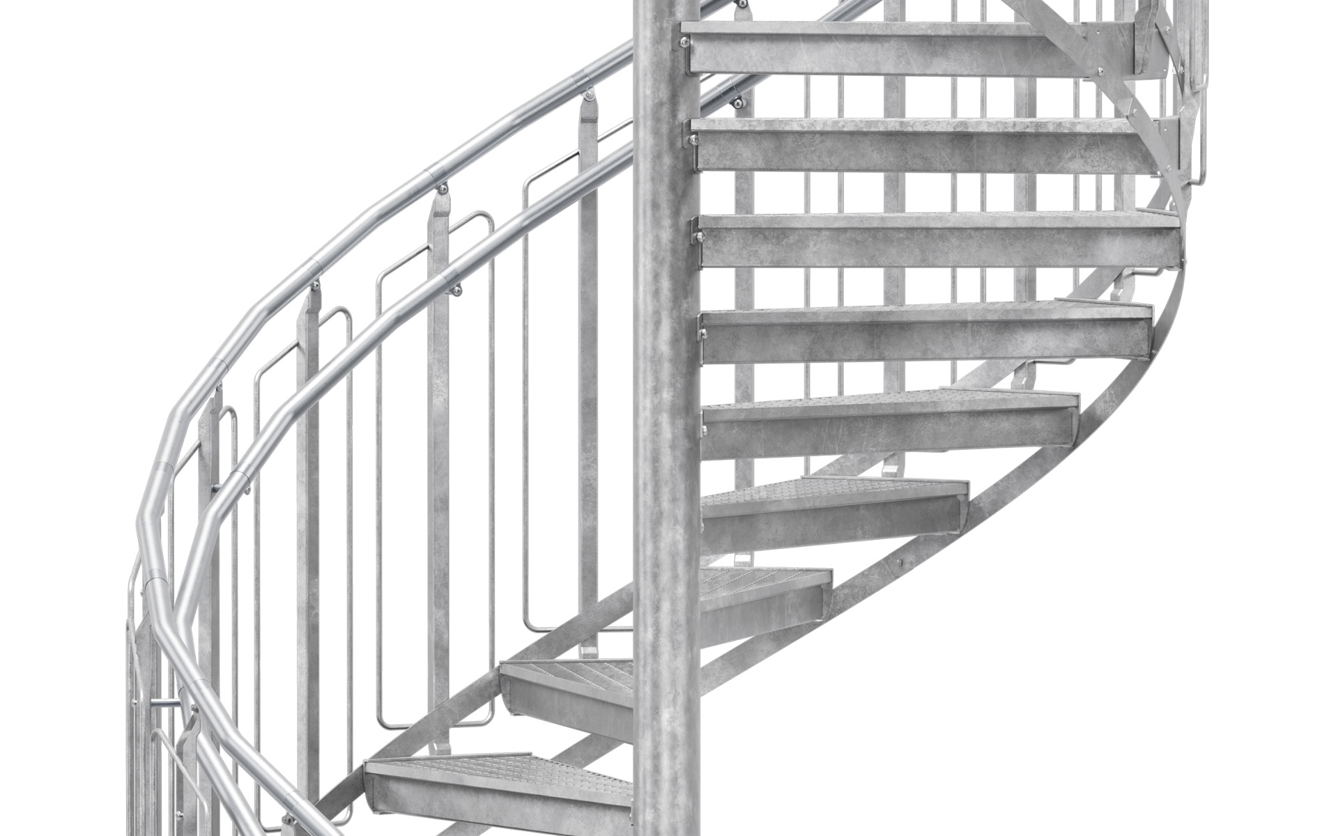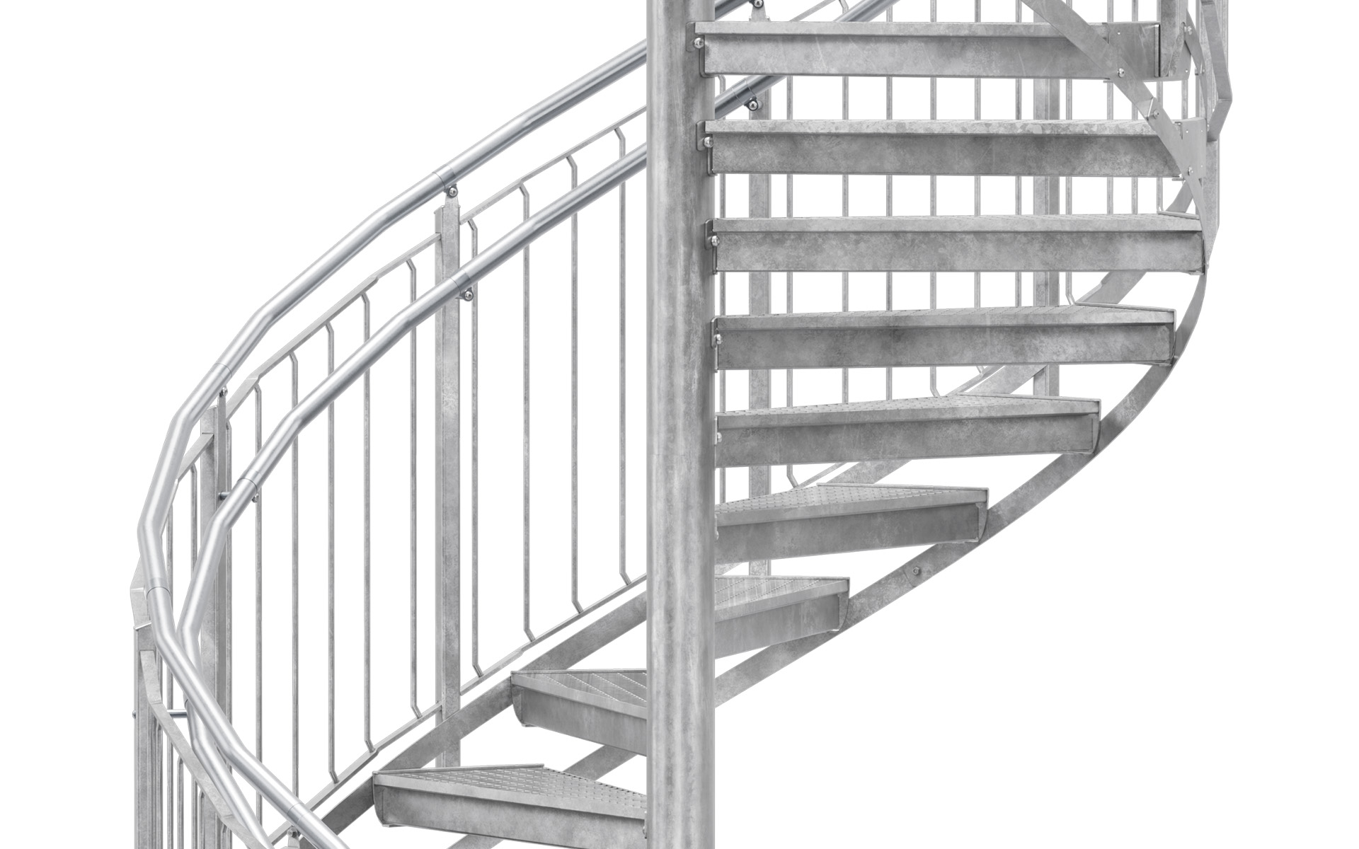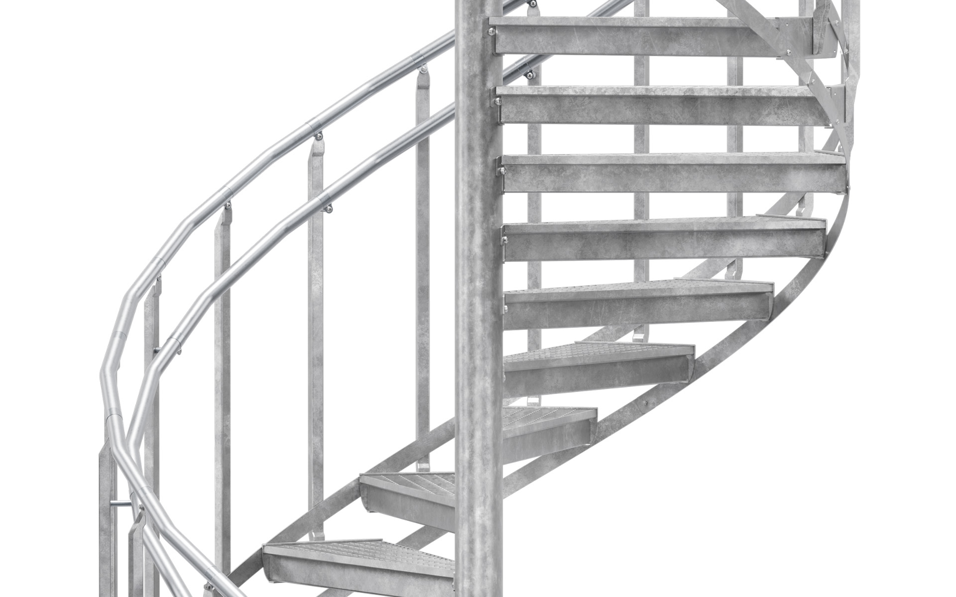 Vores spindeltrapper til udendørs brug leveres som DIN-varmgalvaniserede. Afvigende overfladebehandling efter forespørgsel. Overfladebehandlingen udføres i vores egen fabrik og er stabil mod dagligdags belastning. Vores moderne moderne forzinkningsmetode giver en særlig korrosionsbeskyttelse. Foruden er der på forespørgsel mulighed for at få spindeltrappen lakeret i standardfarver til indendørs og udendørs brug. For mere information, besøg vores overfladebehandlingsside.