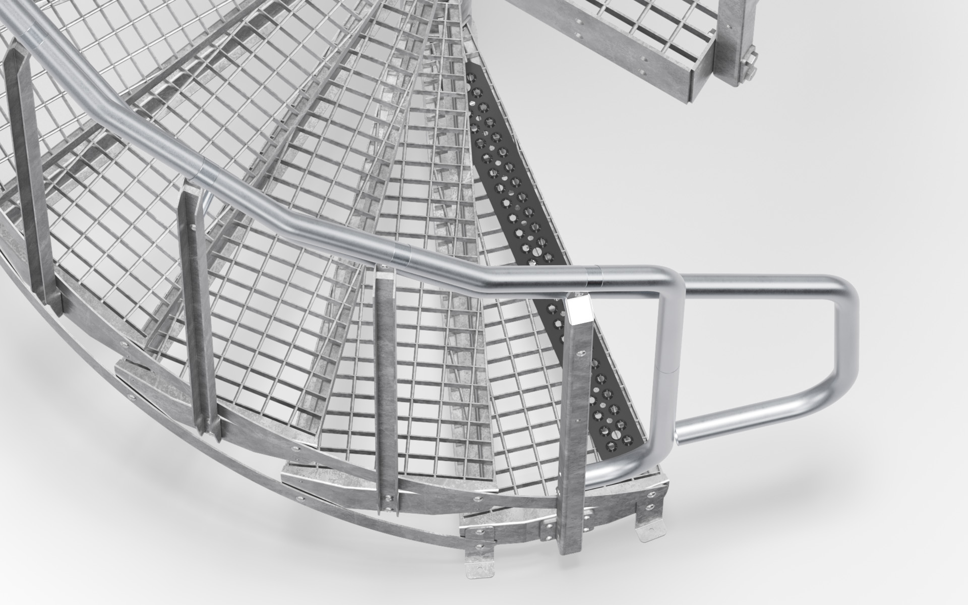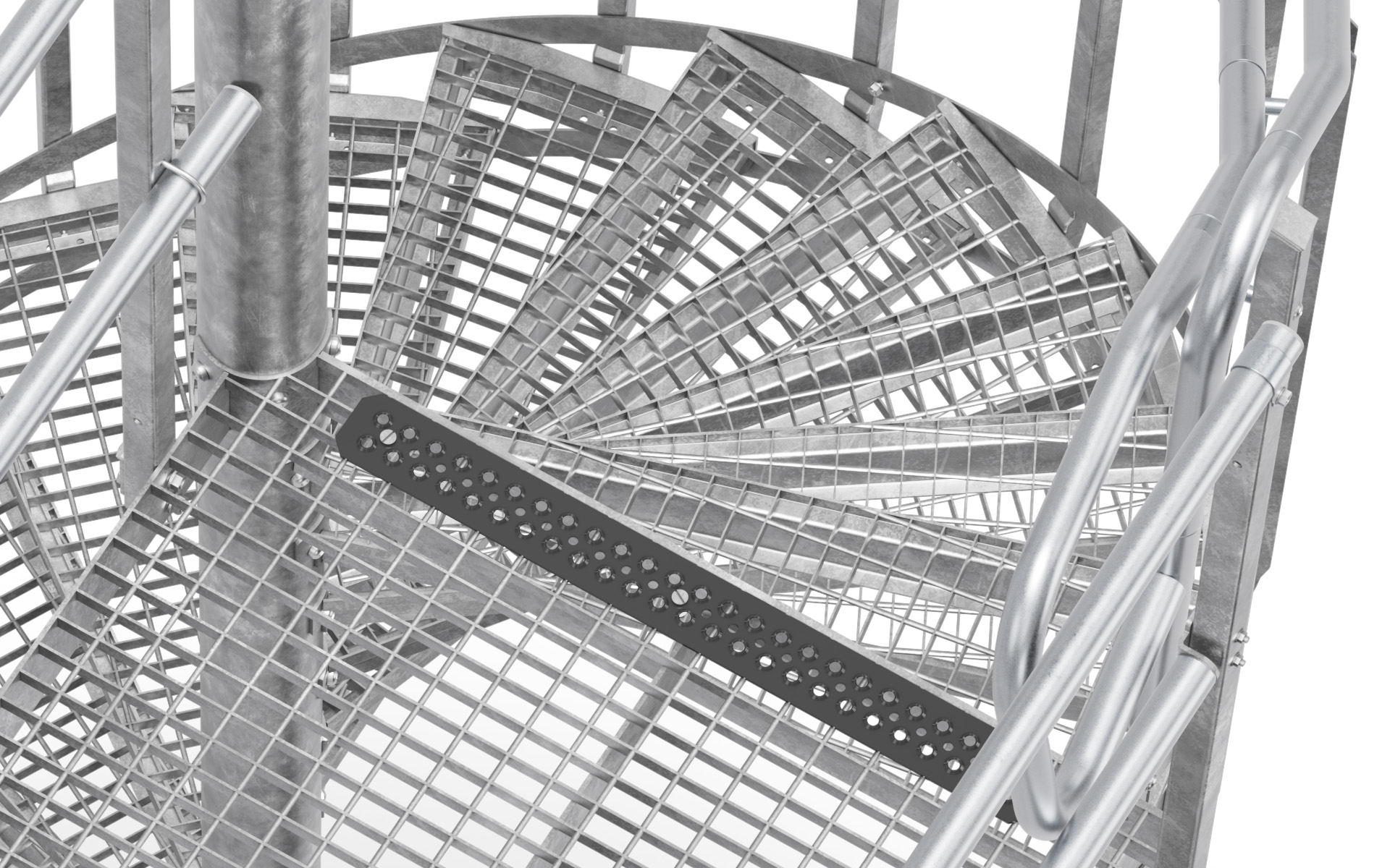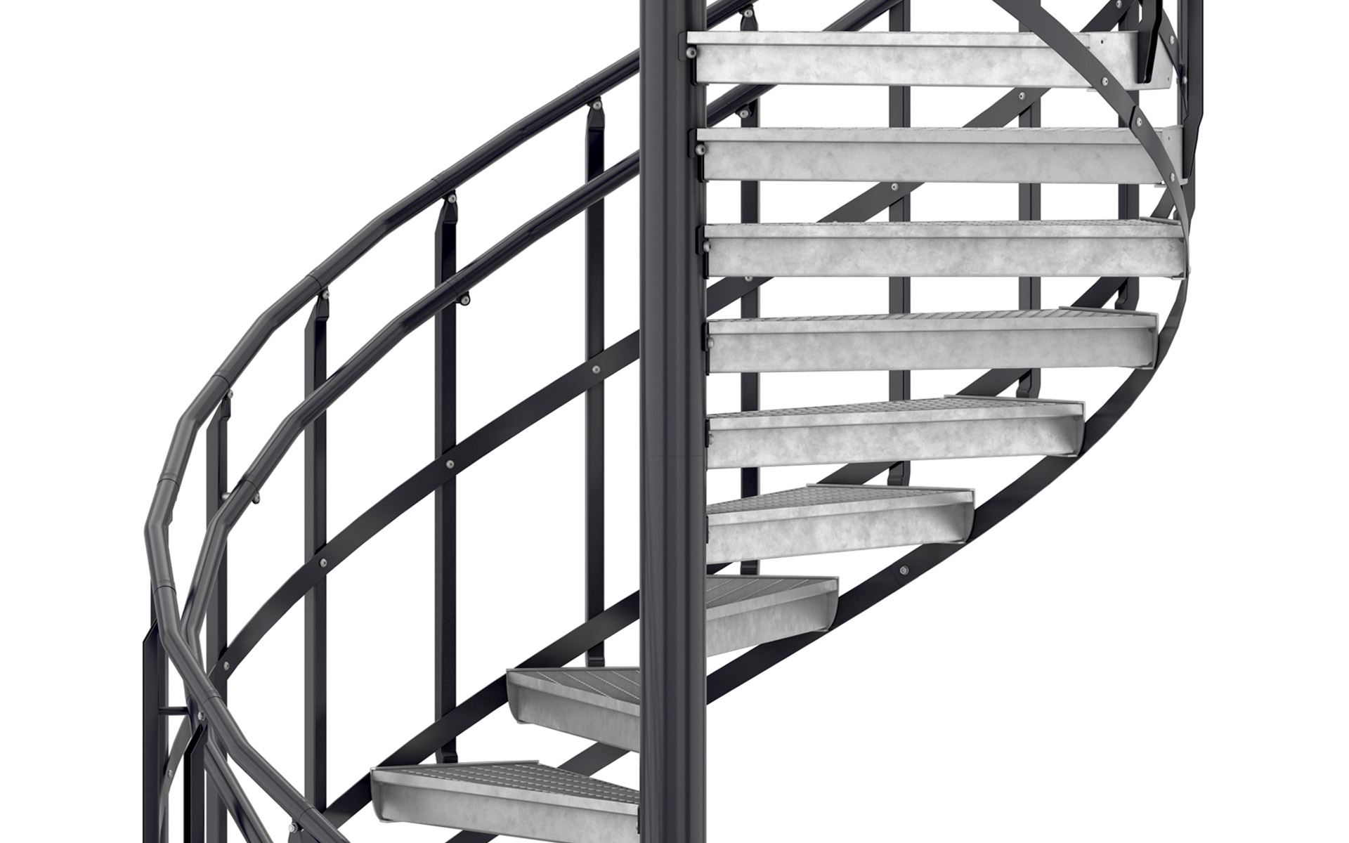 Vores spindeltrapper til udendørs brug leveres som DIN-varmgalvaniserede. Afvigende overfladebehandling efter forespørgsel. Overfladebehandlingen udføres i vores egen fabrik og er stabil mod dagligdags belastning. Vores moderne moderne forzinkningsmetode giver en særlig korrosionsbeskyttelse. Foruden er der på forespørgsel mulighed for at få spindeltrappen lakeret i standardfarver til indendørs og udendørs brug. For mere information, besøg vores overfladebehandlingsside.