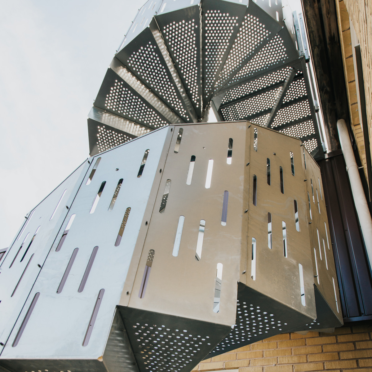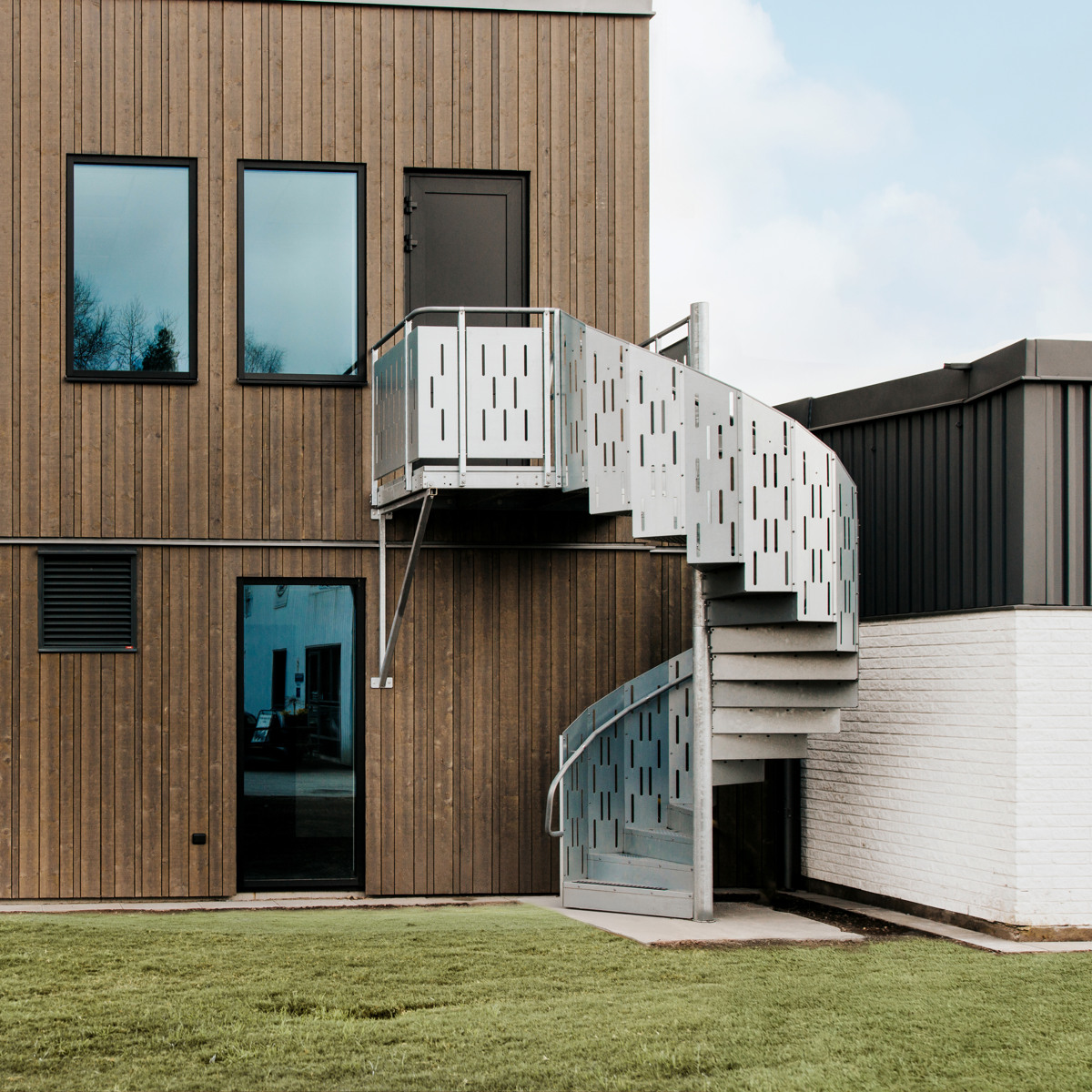 Spindeltrappen JOS er først og fremmest udviklet til at fungere som en tryg og stabil flugtvejstrappe, men den er også et oplagt valg til andre omgivelser, hvor funktion og industrielt design er en fordel.